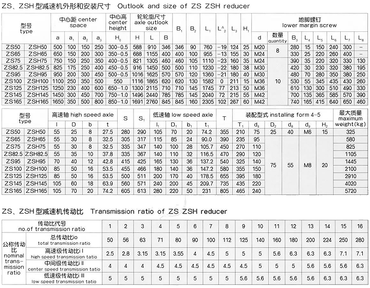 | 型 號(hào) | 高速軸 | S | S1 | 低速軸 | T | 裝配形式5-6 | 最大重量(公斤) | ||||||||||||